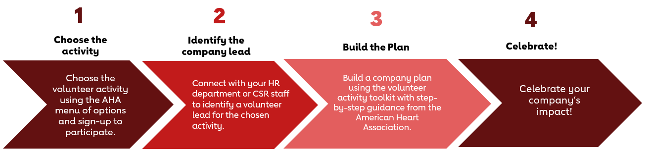 By completing the Company Sign-up Form, your company is agreeing to organize a Heart of Community Serve Day volunteer activity using one of the American Heart Association volunteer activity toolkits. The American Heart Association is confident that through the use of the toolkits, each company and its volunteers can find an opportunity to give back to the community in such a manner as works best for each individual company. Questions? Email: aha.national.heartball@heart.org.